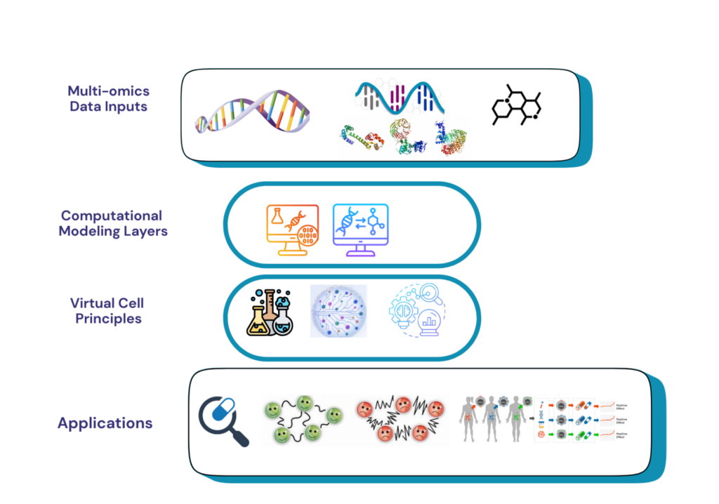 In simple terms, a virtual cell is a “digital clone” of a cell. It does not simply replicate the appearance of a cell, but reconstructs the internal operational logic — how genes are regulated, how proteins interact, how signals are transduced, and how energy flows. It can be compared to building a precise architectural model: instead of only looking at the finished product, we clarify the specifications and connections of every beam, column and pipeline, so that the model can be used to simulate the performance of a real building under various conditions. Building such a digital model first requires using various omics technologies to portray the molecular state of cells from different perspectives; then integrating these data into a unified computational framework to reconstruct gene regulatory networks, protein-protein interaction networks and metabolic pathway maps; finally, introducing various perturbations into the model to observe cellular responses. At present, this field has moved from proof of concept to practical application exploration. Although it is still far from the ideal complete cell simulation, the technical pathway is clear and feasible.